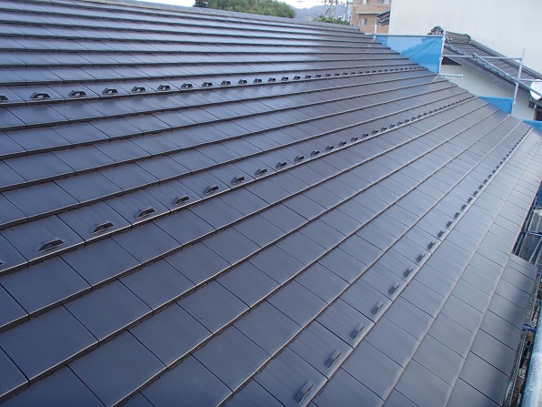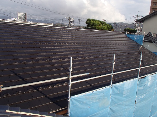 フルフラットタイプの平板瓦です。(スーパートライ スマート クールブラック)